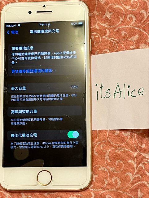 物品狀況:二手、電池健康度72%、功能正常,使用時有用保護殼及貼鏡面貼,外觀8成新