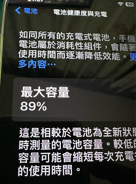 物品狀況:電池健康89%,外觀無傷,邊框有裝殼的痕跡