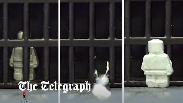 以輕鬆穿過鐵欄,而當鎵冷卻至室溫時又能重新固化,恢復成原來的人形形狀。