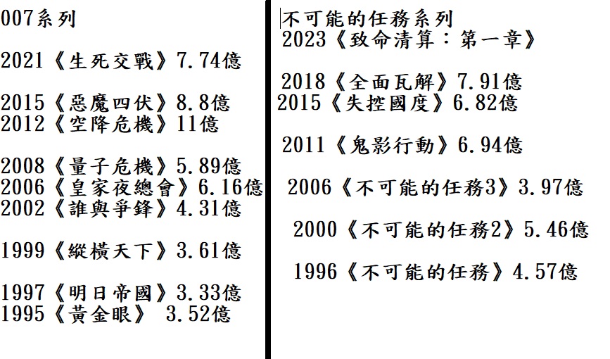 → godshibainu : 票房、年份比較 007這幾集也是系列賣座前九 07/10 14:32