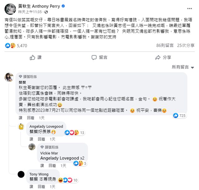 文章來源:黃秋生貼文