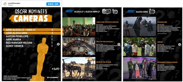 1.想知道入圍奧斯卡的作品用哪些品牌的攝影機拍攝嗎?(2021年版)