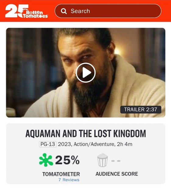 標題[情報] 《水行俠 失落王國》爛番茄開盤