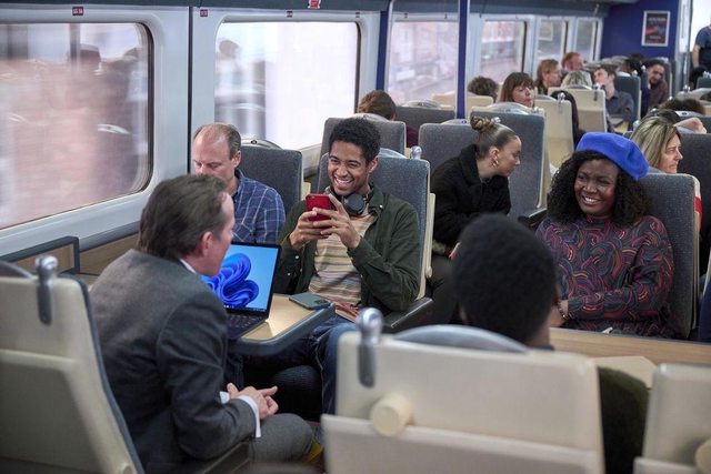 它也有多線人們本來互不相識,都是倫敦各個角落靦腆害羞的小英國人、平日矜持有禮保持英式arm-length,但本片把這多線找到一個共同場域齊聚一堂:火車,通勤火車,從倫敦郊區每天早晨進入市中心的通勤火車,人們下班回家可能時間不等、但早上上班搭的都是同一班、甚至習慣性上了月台站到同一位置坐進同一節車廂、連大家各自喜歡什麼座位都隱然有了默契找到各自的位置!記得以前連恩尼森《疾速救援》(2018)也玩過這個題材,他演的最強老爸也不禁興嘆「我們每天搭同一班車熟稔面孔」卻從不相識,如今這部《聖誕節到了》也要提出同樣的人情探問: