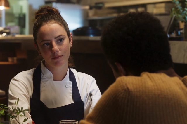 對 Adam 夢想最認同的女廚師 Emma 由 Kaya Scodelario演出,為本片「聖誕精神」之外增添三分冬日浪漫!果然平日喜歡欣賞路人風景的 Adam 還須登高一呼方知「德不孤必有鄰」:這位 Emma 在火車上一樣很愛看人更愛編故事,火車眾人日復一日一舉一動在做什麼愛看什麼書、甚至偶在街上巧遇又是什麼不同面貌有什麼反差,她都記在心上想像對方背景故事與笑淚人生... 當然這一切僅限「好奇幻想」直到今日才真實際接觸!而在家裡她也有個世故男友 Simon,力爭上游專注功名社交對理想人情不置可否... 是否「聖誕精神」的表述實踐既幫助你看見別人亦重審自我?