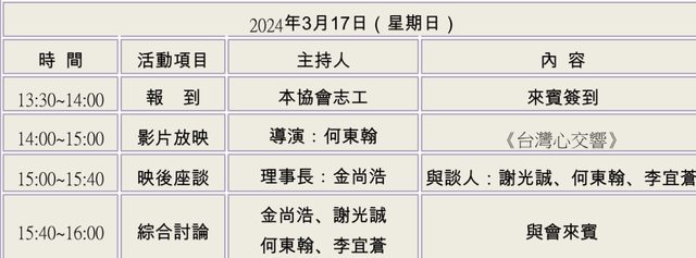 《台灣心交響》特映會暨映後座談議程 https://i.imgur.com/tBXAwQ9.png