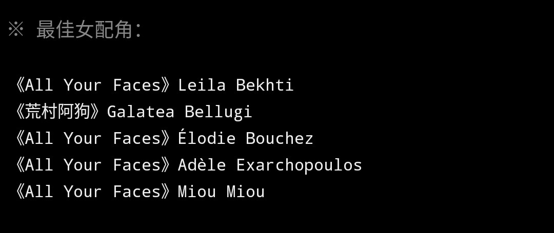 ※ 最佳女配角:
