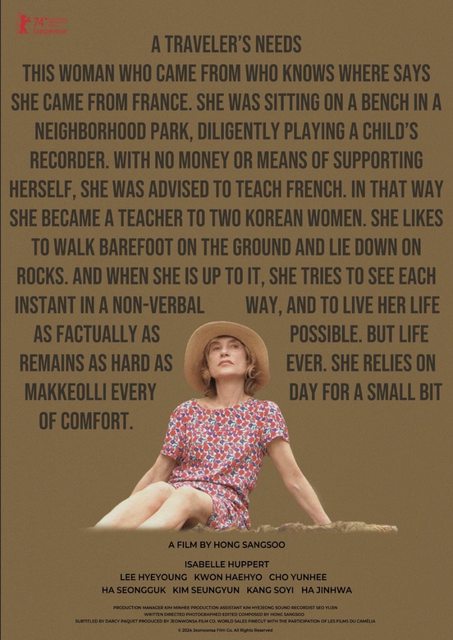 洪常秀入圍柏林影展主競賽的個人第 31 部劇情長片。法國影后伊莎貝雨蓓主演,這是他
