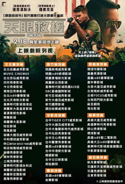 標題[情報] 羅素克洛《天眼救援》全台上映戲院列表