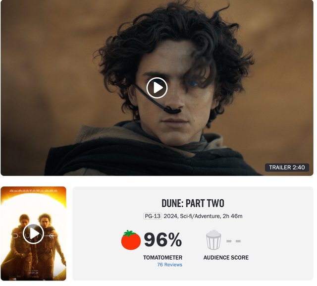 → amberkola : 沙丘2如果沒在電影院看,絕對是觀影的損失,國外幾 02/22 17:01