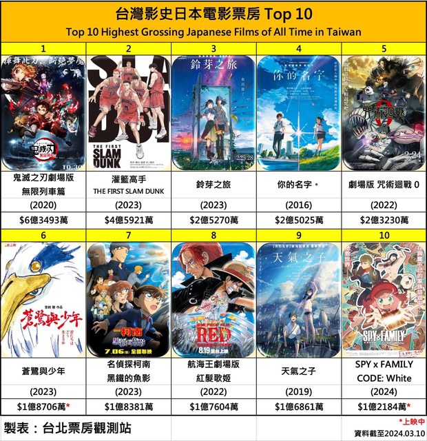 推 kevinaa : 台灣票房這幾年滿慘的 成長的只有日本動畫 03/12 08:48