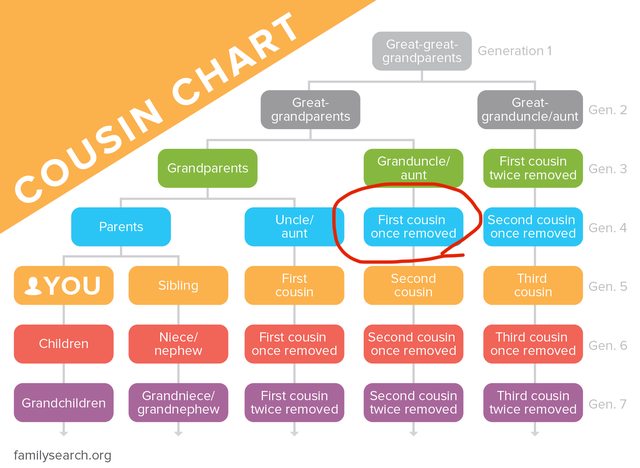 英文叫做 first cousin once removed
