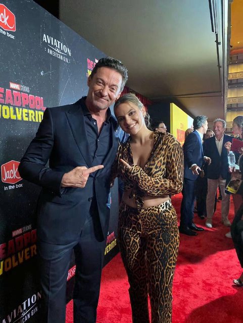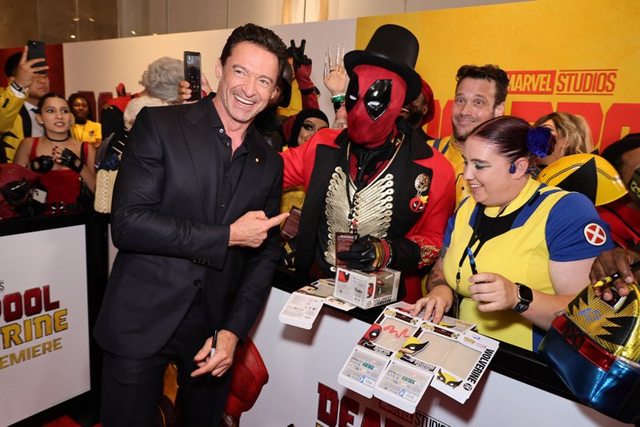 休傑克曼在「死侍與金鋼狼」紐約首映與粉絲簽名合影。圖/漫威影業提供