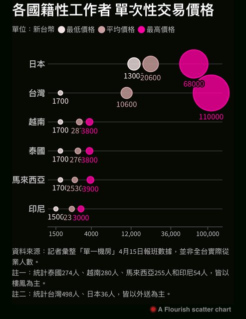 推 Drither: 隔壁桌的人竟然在討論包養... 06/28 10:36 → littleme1125: 這表指的是'在台灣各國籍工作者'的價格吧 06/28 10:46