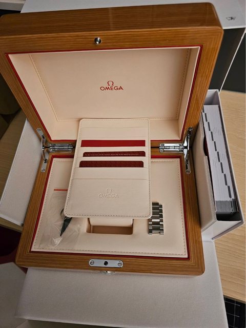 42.40毫米不鏽鋼錶殼搭配同款錶鏈。這款計時碼錶搭載自製的歐米茄3330同軸擒縱機芯