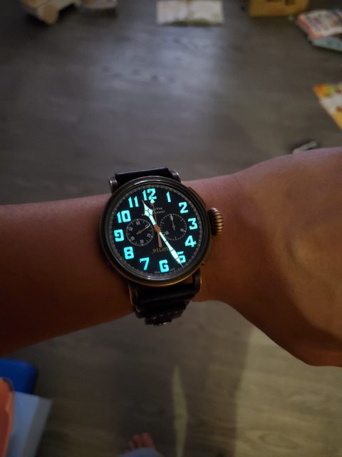 夜光數字時標,教堂時針,ZENITH獨家的PILOT字樣,完整的1~12沒被雙眼切到。