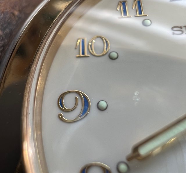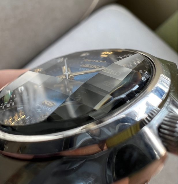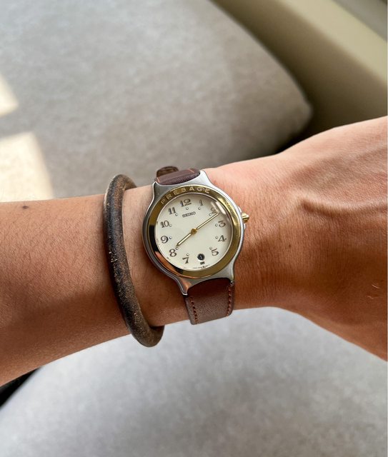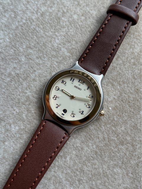 2.Seiko 老石英 presage 系列,奶油面金外圈,每一顆時標中間還有藍色填滿設計,蠻