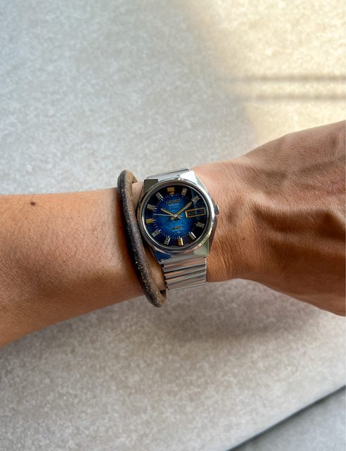 式榻榻米漸層藍面,搭配原裝立體鏡面,原裝錶帶(手圍約可以到18cm)已洗油保養完成