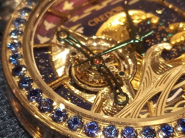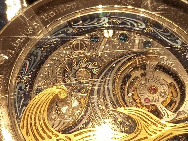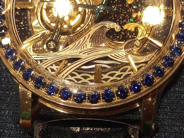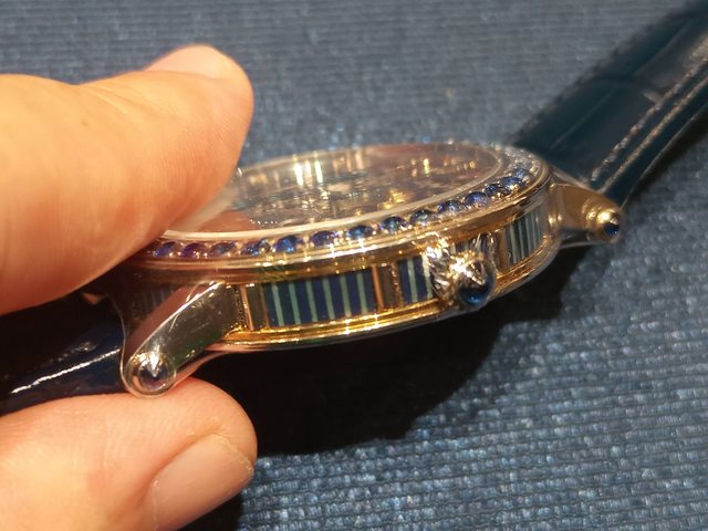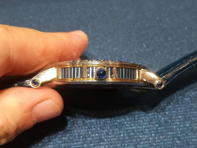 錶殼側面的紋路其實也是螺鈿鑲嵌。