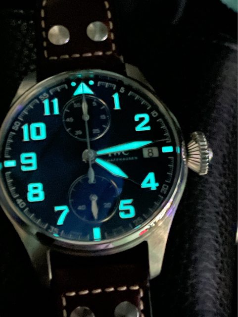 IWC大飛46MM第一次有計時功能、錶面對稱協調、手上鍊八日動力、經典放射藍面盤