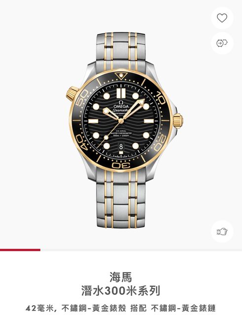 標題[買錶] 徵Omega半金海馬300鏈帶款 黑面藍面