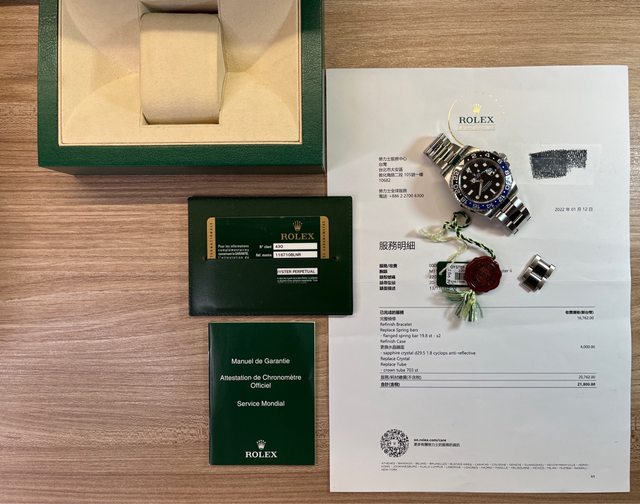 這只藍黑圈也在2022回過勞服洗油保養及更換玻璃(附單據),前錶主有貼膜,我僅保留