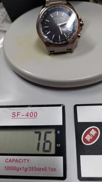 的大三針判讀容易,時標跟指針晚上都有夜光,藍寶石鏡面無傷,5局電波對時正常,萬