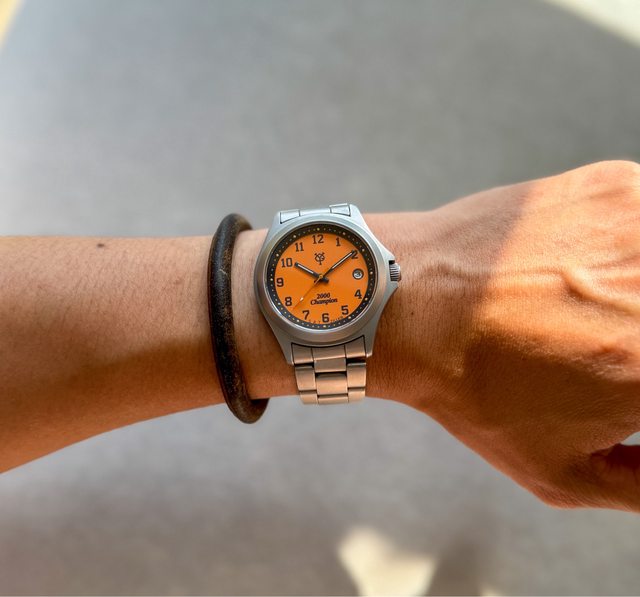 芯,藍寶石鏡面,錶徑38mm,面盤為巨人隊代表橘色logo設計,附原廠鋼帶(約20cm)及