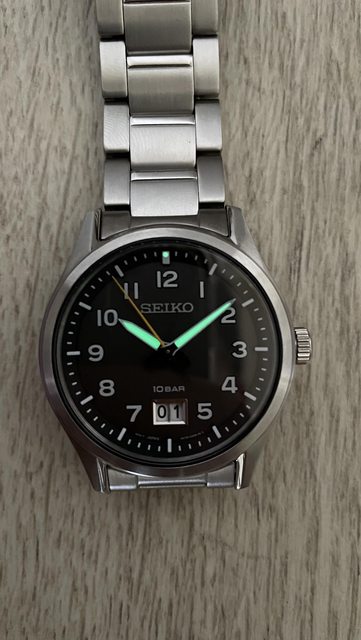 石英機芯,藍寶石鏡面,磨砂面盤,立體阿拉伯數字時標,立體棒狀時標,指針使用LumiBrite夜光。這款台灣目前應該沒有進貨,是在歐洲電商買的。