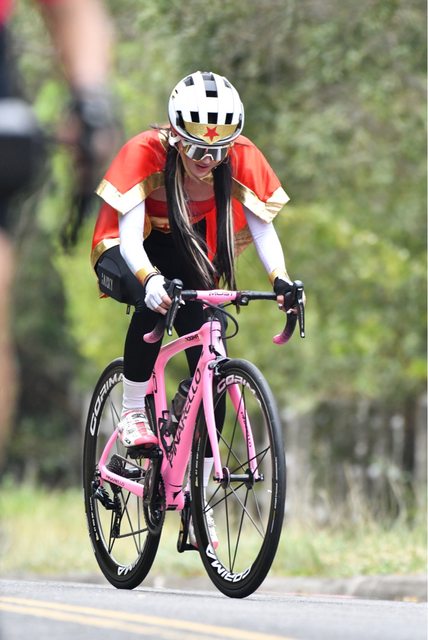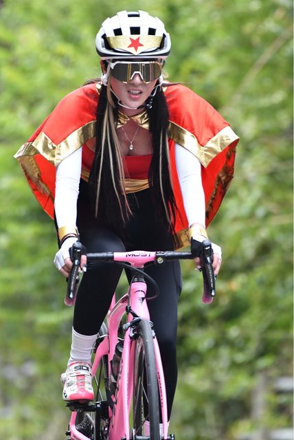 遇到了一個穿著神力女超人打扮的車友,