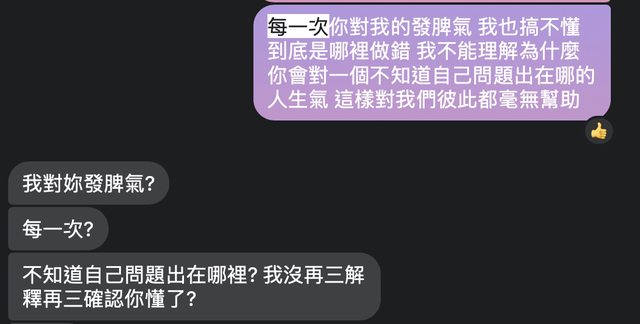 所以只要他發脾氣就是你有做錯
