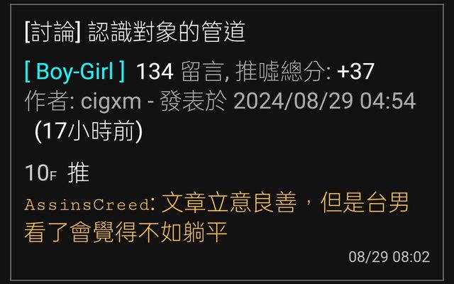 ※ 文章網址: https://www.ptt-club.com.tw/Boy-Girl/M.1724943336.A.81F