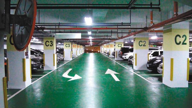 難怪停車場的地都是綠色的油漆