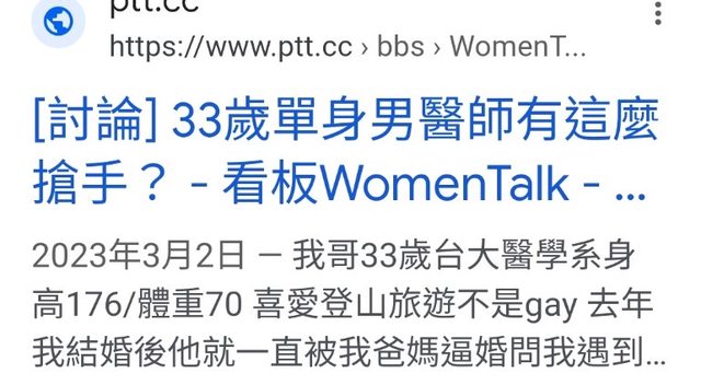 : 我有認識50歲還找不到的,已經是醫師了家裡還有礦,長得不差,165左右,但問題還