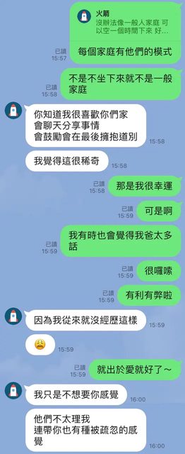 : 忽略、缺愛(其中一個印象深刻的,據她所述沒有一次的畢業典禮、大考、選志願、人生