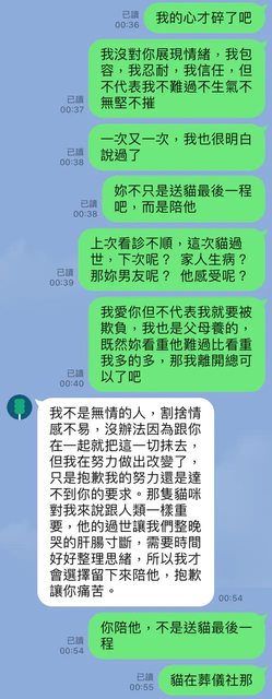 : 某次是他家的貓咪猝死(其實我很懷疑是否猝死還是他做了甚麼極端的事...他家三隻貓差