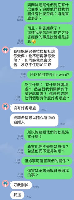 : 7.持續追蹤他們IG、FB等等社群,因為有抓到過開噤聲、閱後即焚,所以我跟他說必須退