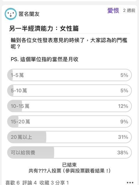 推 kaienchou : 以前認識的女醫師找對象最注重的是頻率跟情緒控管 11/04 10:42