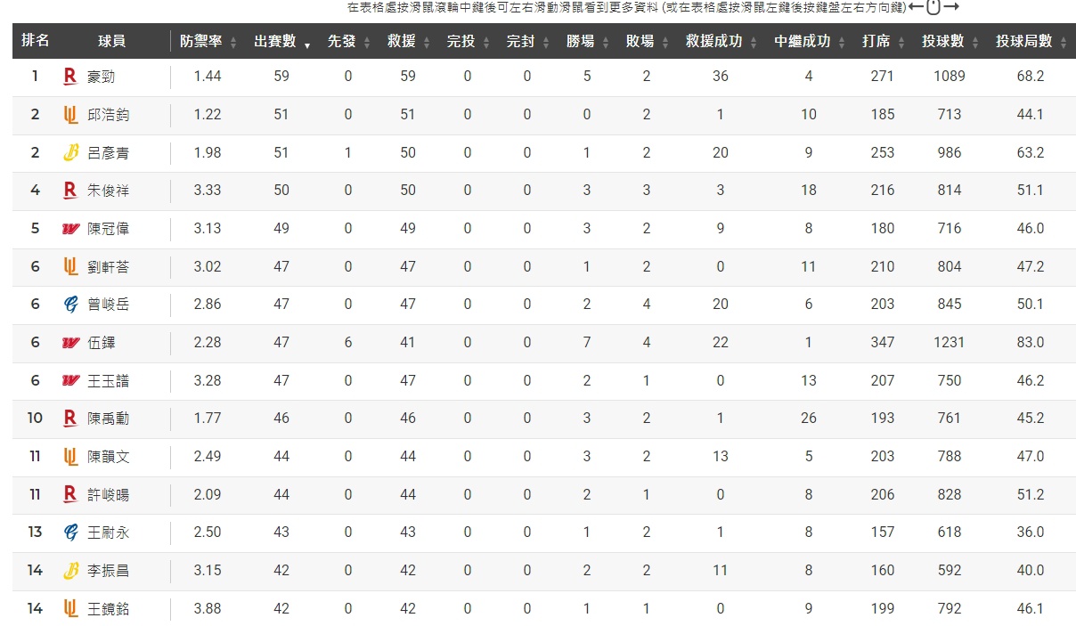 推 msarthur: 瘦呂寶是開季兩場當先發丟,局數才比較多 08/23 11:19