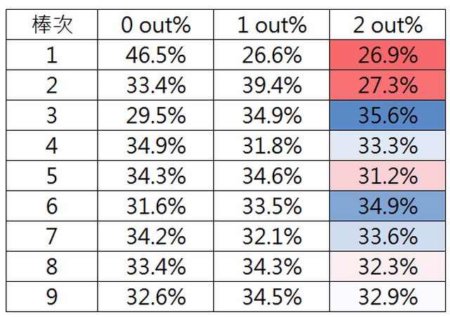 → yanilh: 後段打者較不易連貫、大局,有盜壘能有效增加得分機率 09/25 10:17