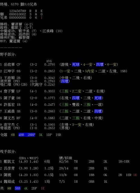 標題[情報] G170 獅3:0兄弟 全場數據box