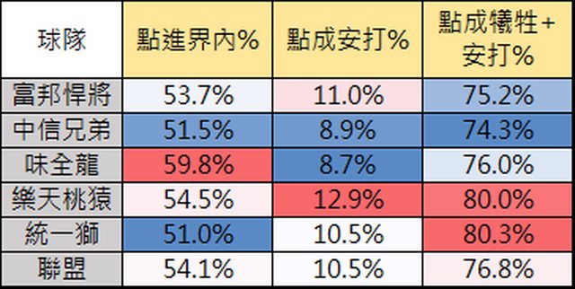 這代表短打戰術成功的比例,有達到推進跑者效果。