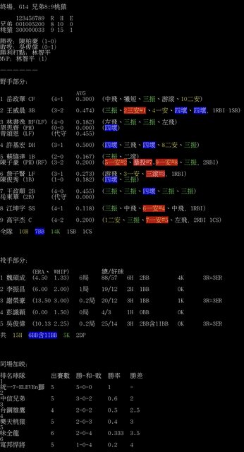 標題[情報] G14 兄弟8:9桃猿 全場數據box
