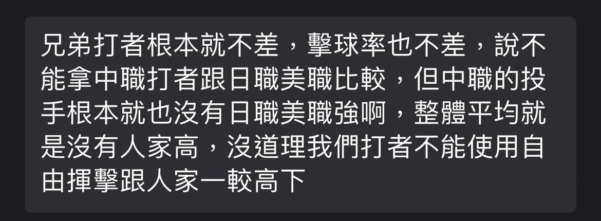 → yanilh: 批評的球迷比較在意的是選手能力在中職環境下能最大發揮 05/07 16:31