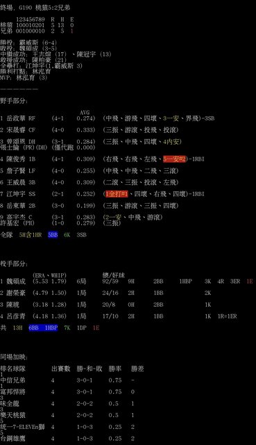 標題[情報] G190 桃猿5:2兄弟 全場數據box