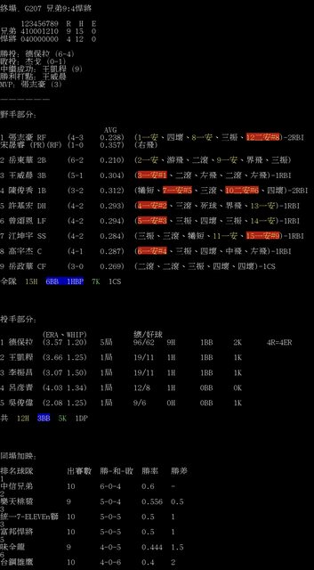 標題[情報] G207 兄弟9:4悍將 全場數據box