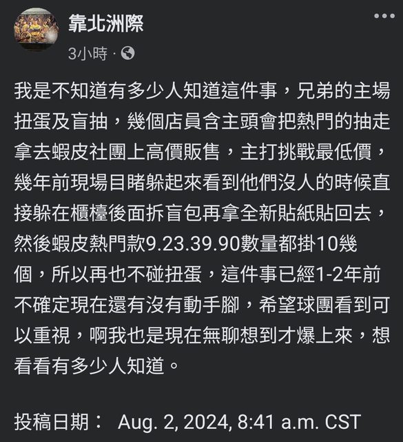 → ejywar: 不用抽盲包 因為抽盲包就有可能會被這樣做 08/03 15:17