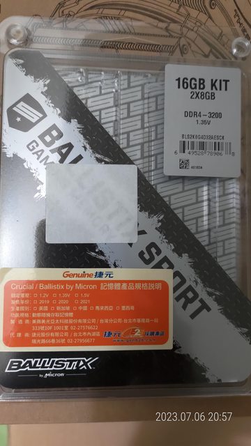 美光記憶體終身保固,捷元代理。