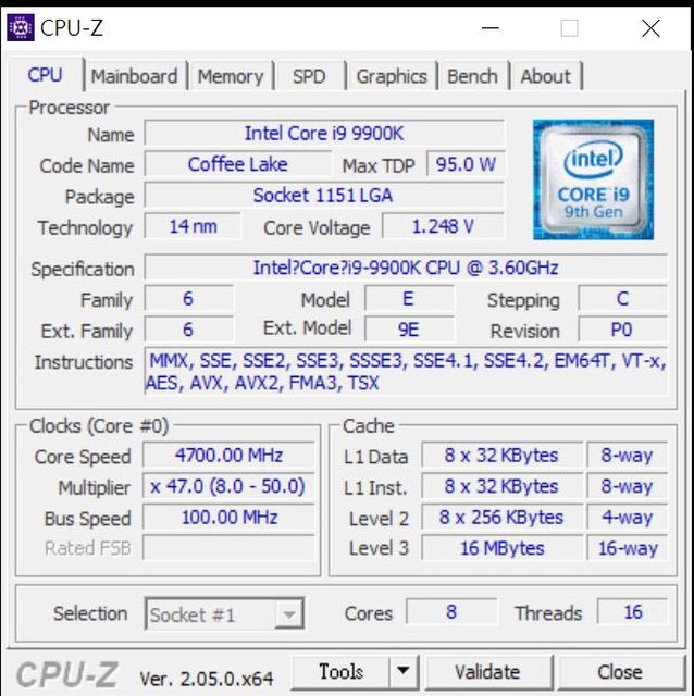 1. CPU:Intel i9-9900K
