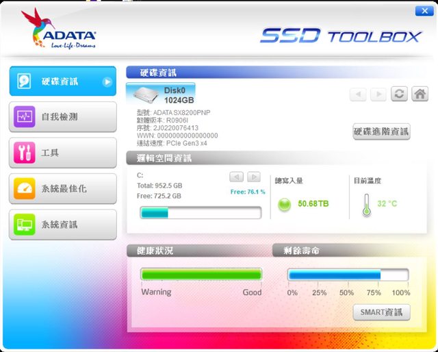 5. 硬碟:威剛 XPG SX8200Pro 1TB M.2 PCIe SSD